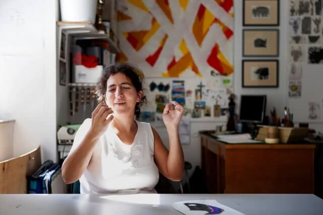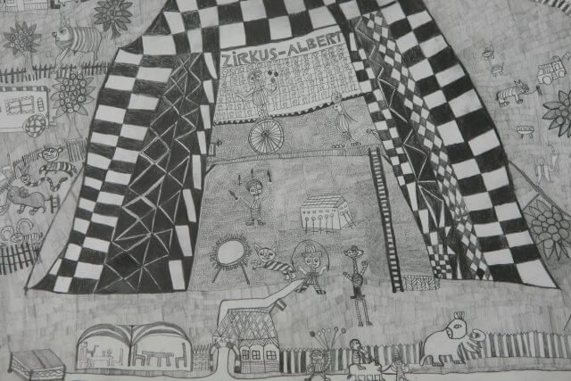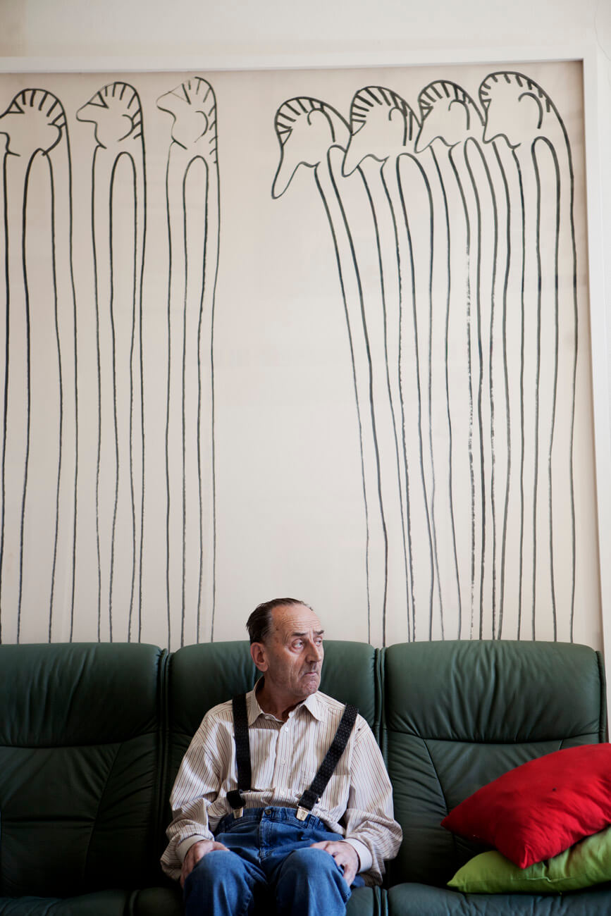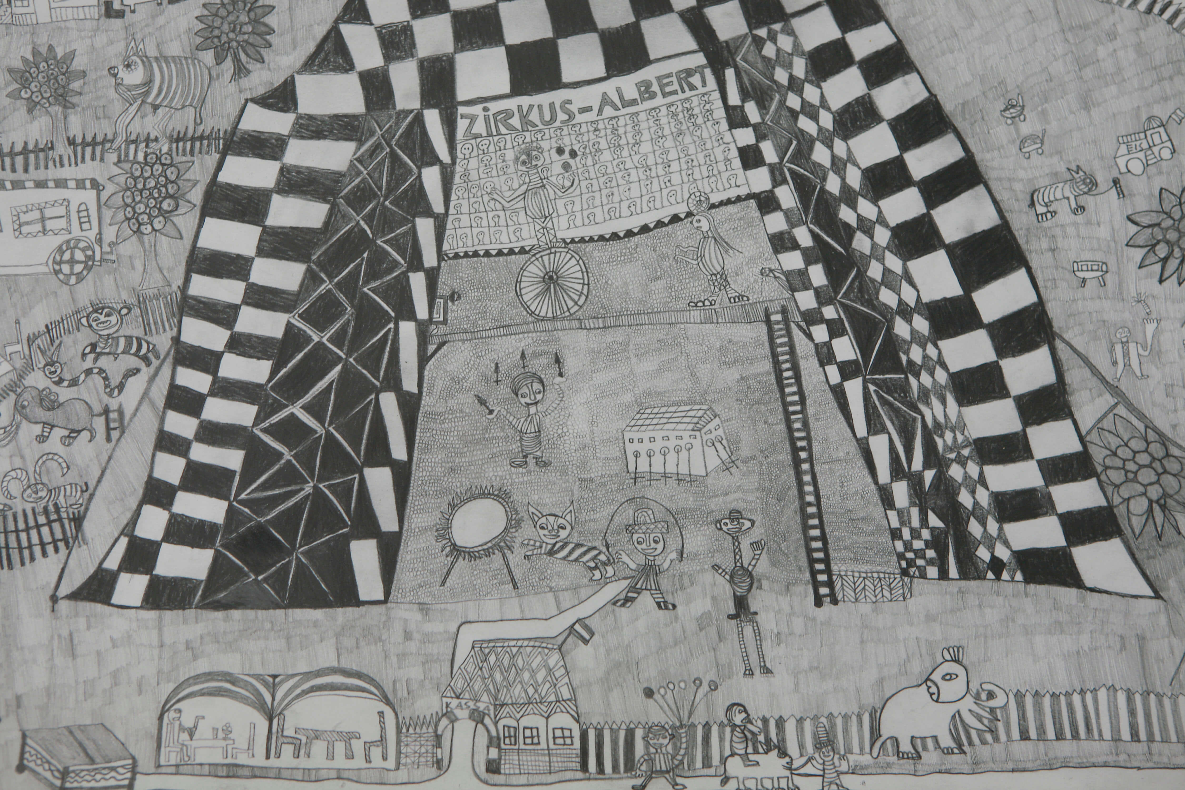 Laila Bachtiar, KünstlerinKarl Vondal, KünstlerJohann Garber, KünstlerHeinrich Riesenbauer vor Werk von Oswald TschirnerLaila Bachtiar, KünstlerinAtelier | Gugging GalerieHeinrich Reisenbauer, KünstlerLeonhard Fink | KünstlerRamona Schnekenburger, Atelierleiterin mit Zeichnung von ihrem KleidZeichnung von Leonhard FinkKarl Fonda, mit seinem aktuellen Werk